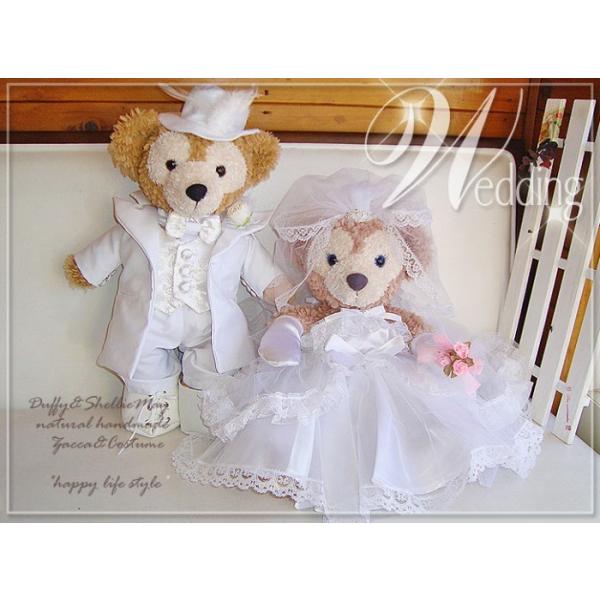 オリジナルハンドメイド ダッフィー シェリーメイのウェディングベアコスチュームセット ウェディングドレス タキシード 白 ぬいぐるみsサイズ用 衣装 服 着せ替え お着がえ ぬいぐるみ別売 ウェルカムベア くま かわいい 癒し 結婚祝い 結婚式 挙式 オリジナル